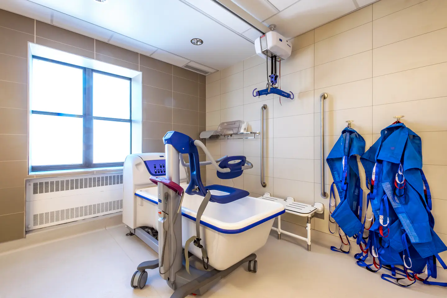 Redevelopment of 30 rooms, including 4 bariatric rooms, on the 3rd floor of the CHSLD Providence Saint-Joseph. A complex project involving demolition in a high-risk asbestos area, the installation of specialized equipment (high-capacity patient lifts, therapeutic baths), and tight 14-week execution.