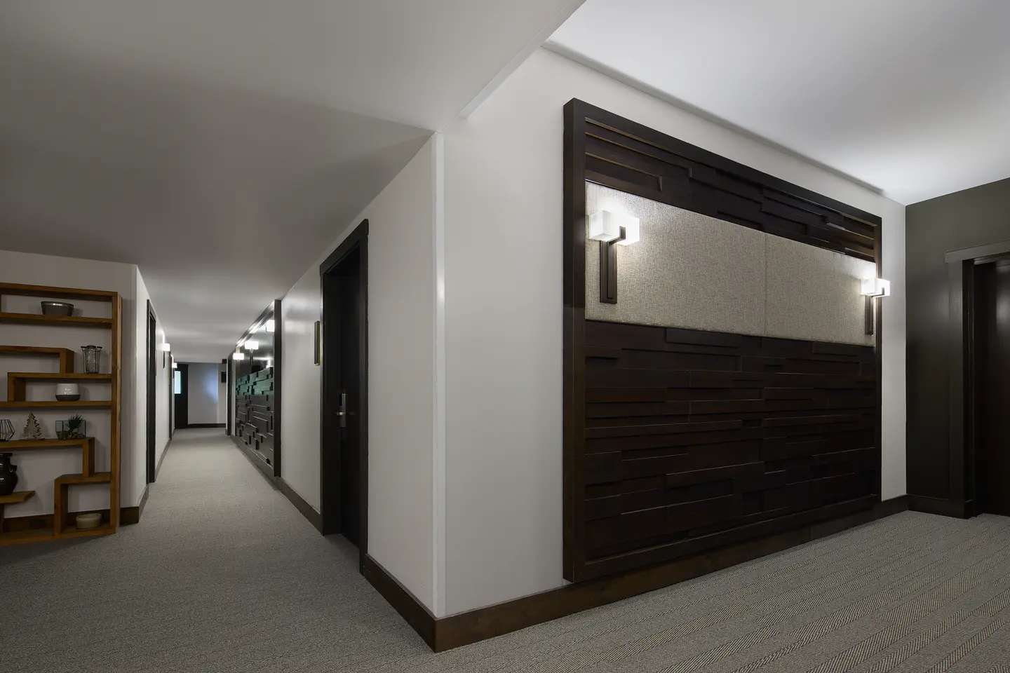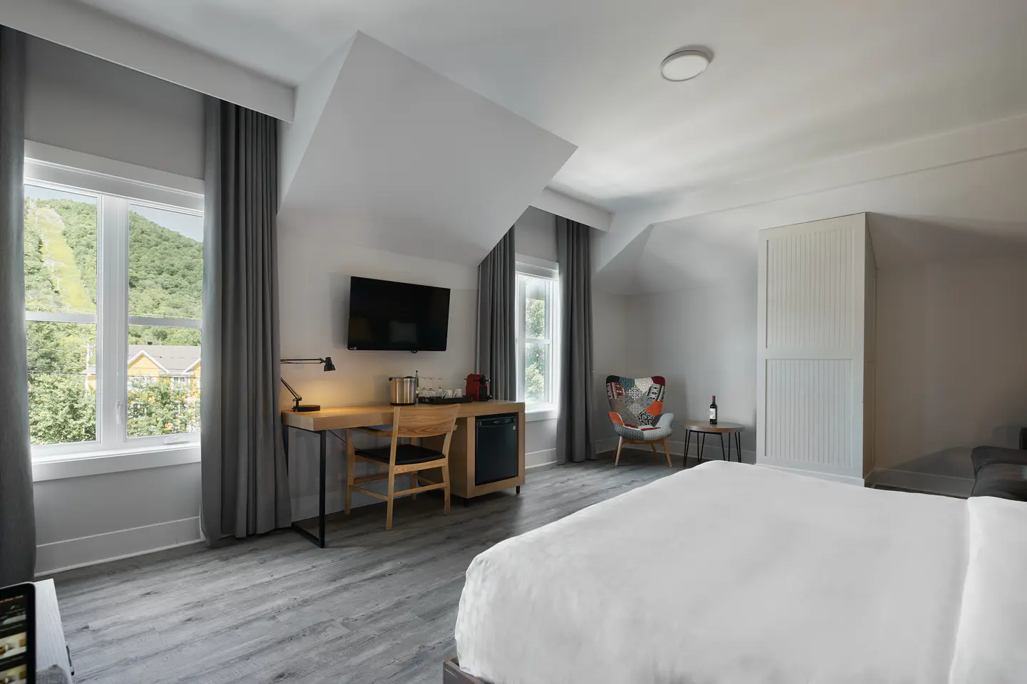 A complete renovation project for 28 rooms at the Espace 4 Saisons hotel in Orford, including the modernization of the Bistro 4 Saisons and the renovation of several common areas. The work aims to enhance the guest experience, improve comfort, and update the hotel's design while maintaining its high-end standards.