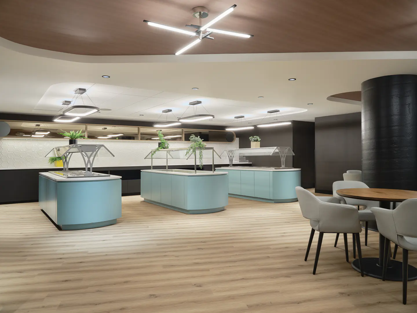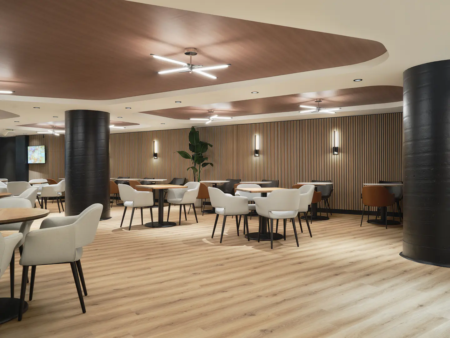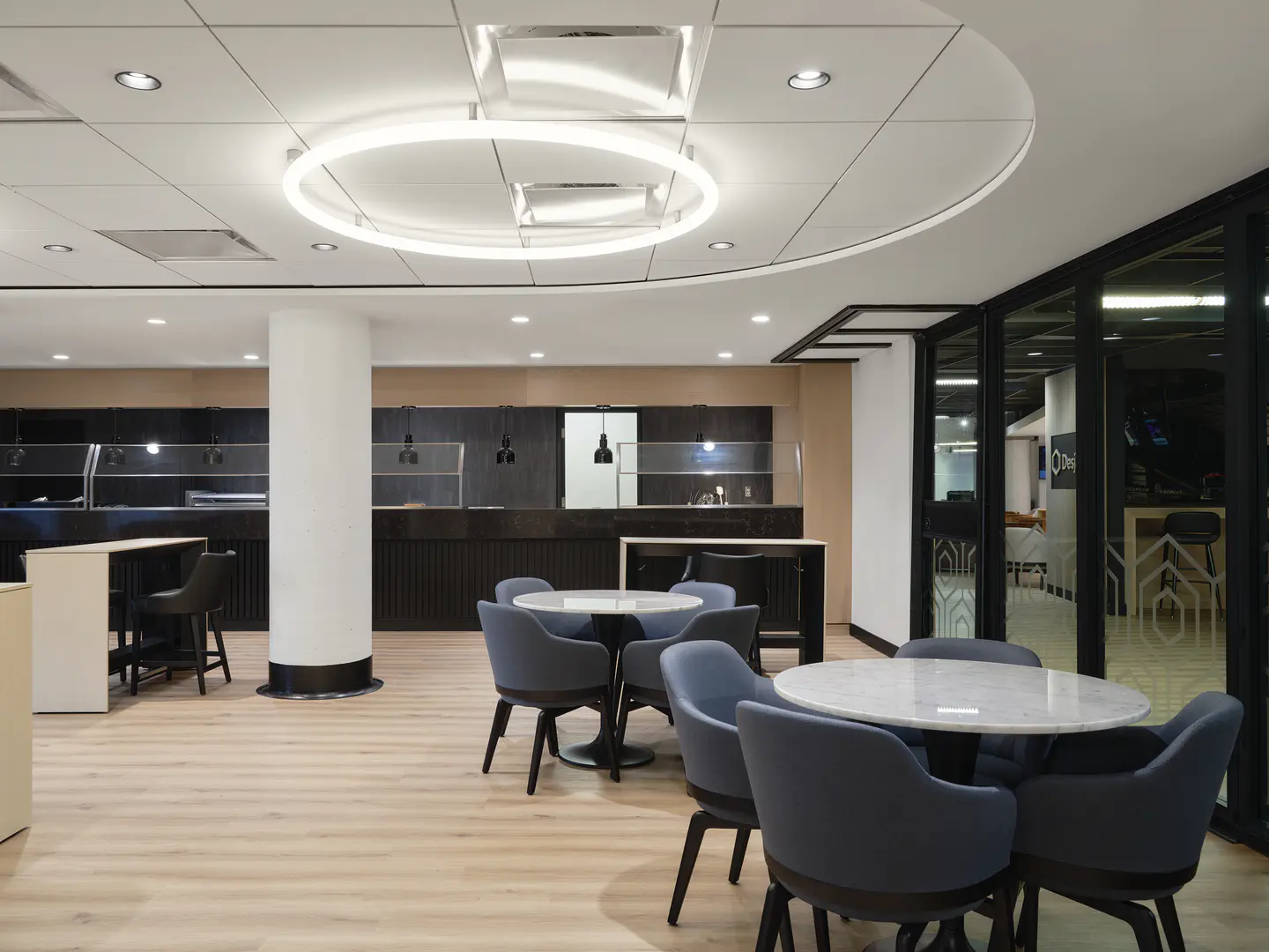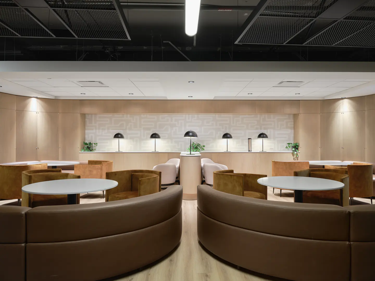 Aménagement d'un nouveau lounge au Centre Bell, situé au niveau de la section Desjardins. Conçu pour rehausser l'expérience des spectateurs, cet espace offre un environnement convivial avec un service optimisé de nourriture et de boissons.