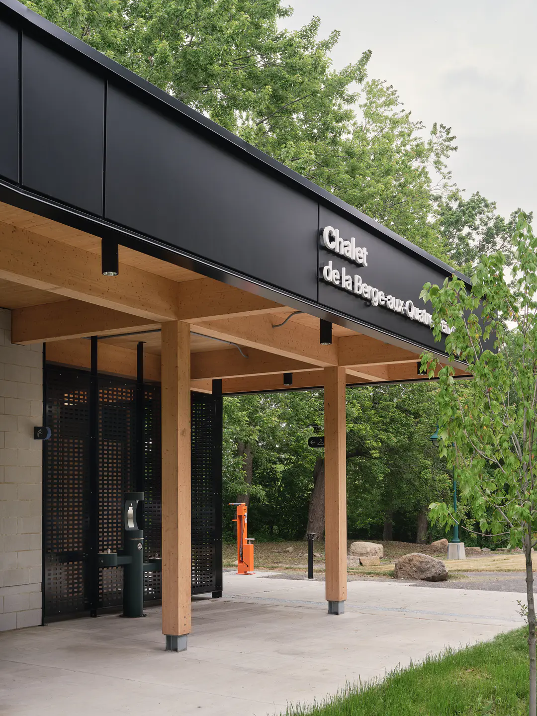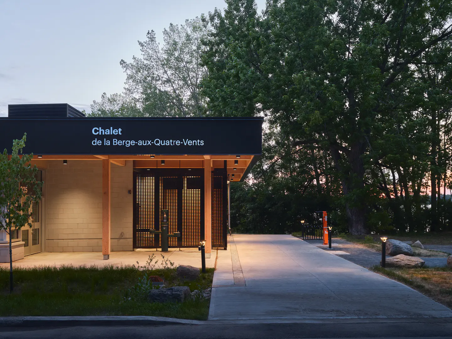 Construction d'un nouveau chalet de parc multifonctionnel s'inscrivant dans une démarche de développement durable et de certification environnementale LEED. Le bâtiment offre des installations modernes pour les usagers du parc (toilettes, salle communautaire, local d'entretien, etc.), tout en intégrant des principes de conception écoresponsables et inclusifs.