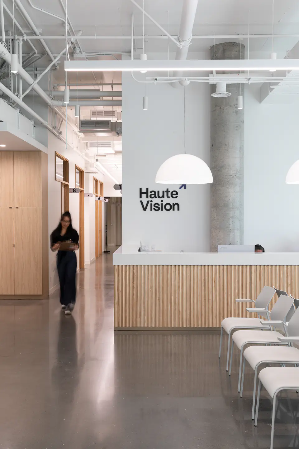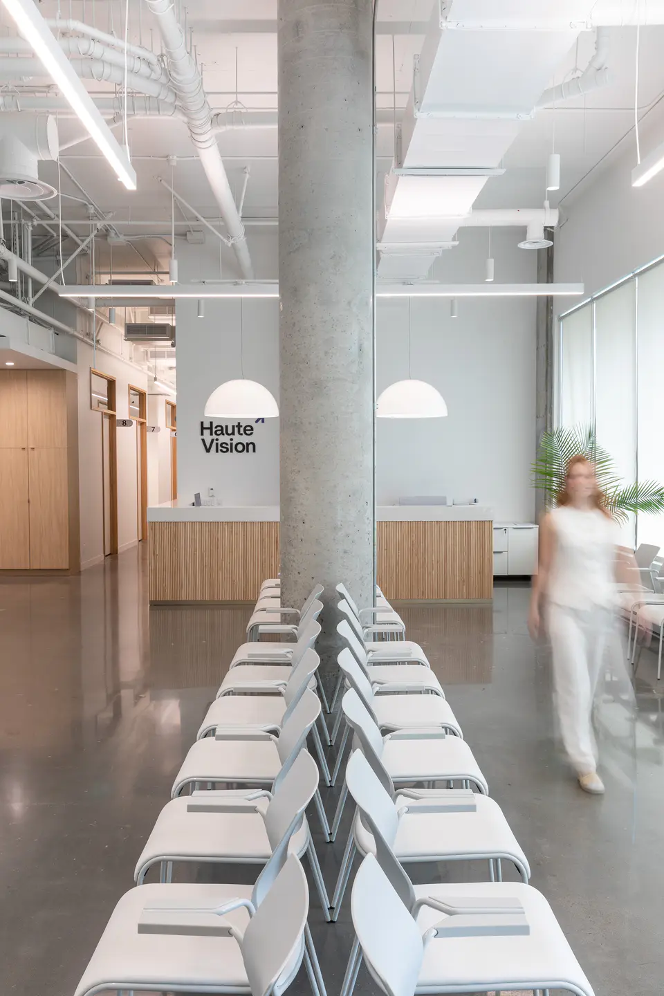 Aménagement d'une clinique d'ophtalmologie spécialisée pour Haute-Vision, intégrant des équipements médicaux de haute technologie.