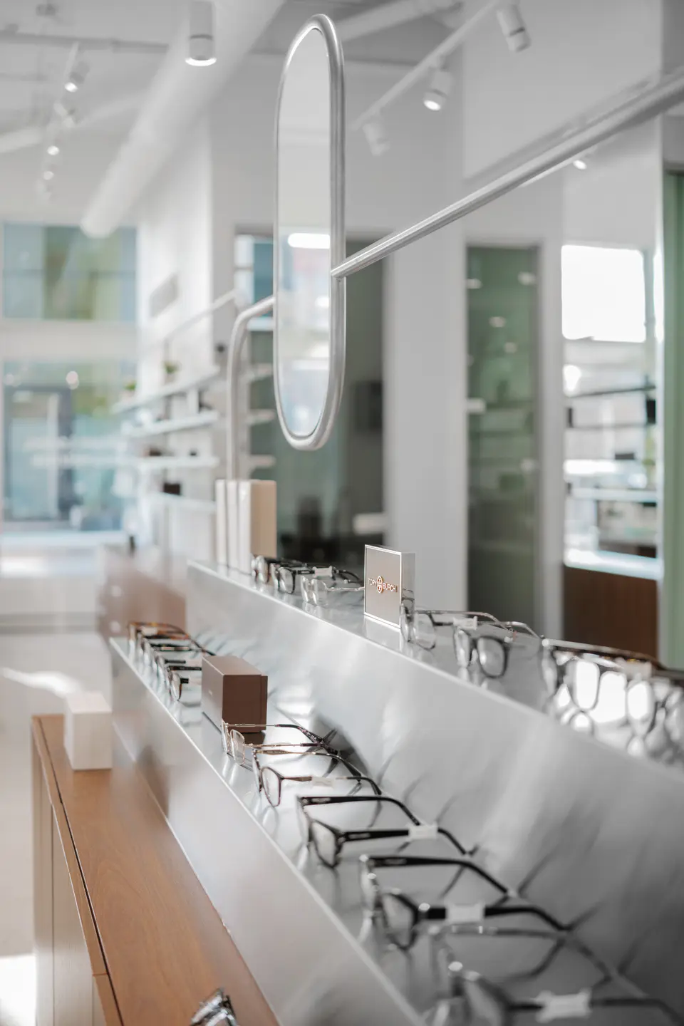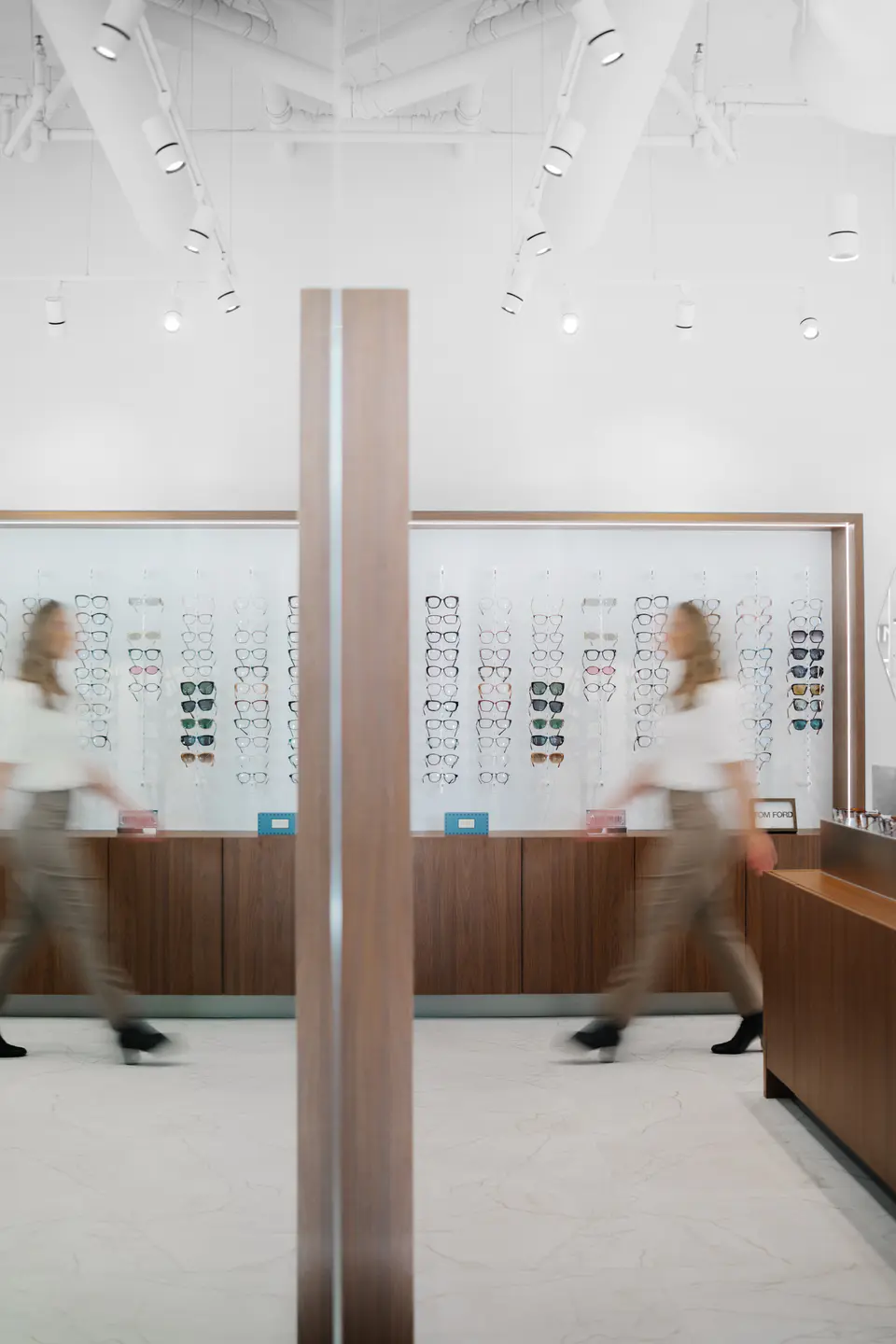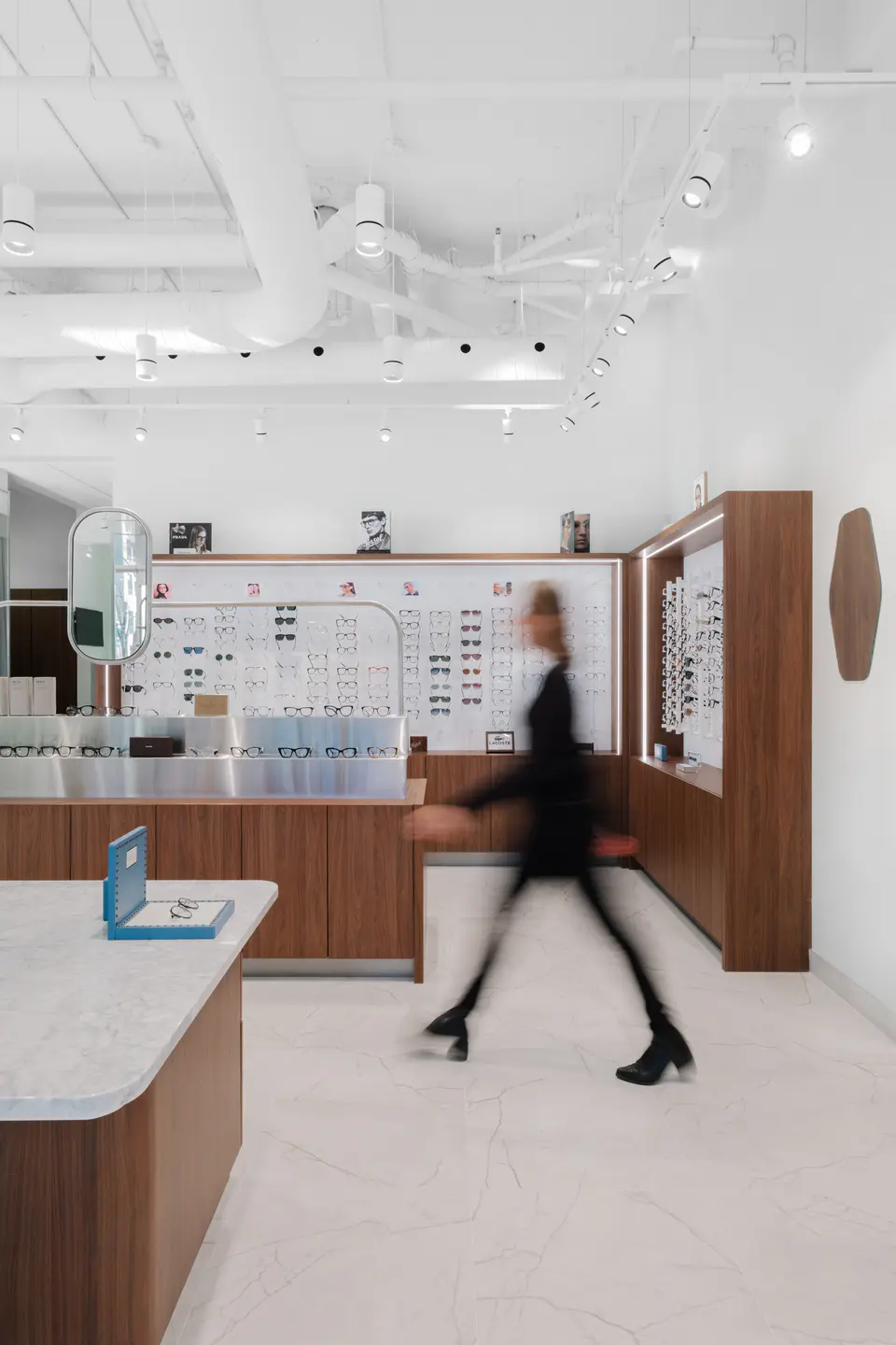 Aménagement d'une nouvelle clinique d'ophtalmologie et lunetterie proposant des montures haut de gamme dans le Vieux-Port de Montréal.