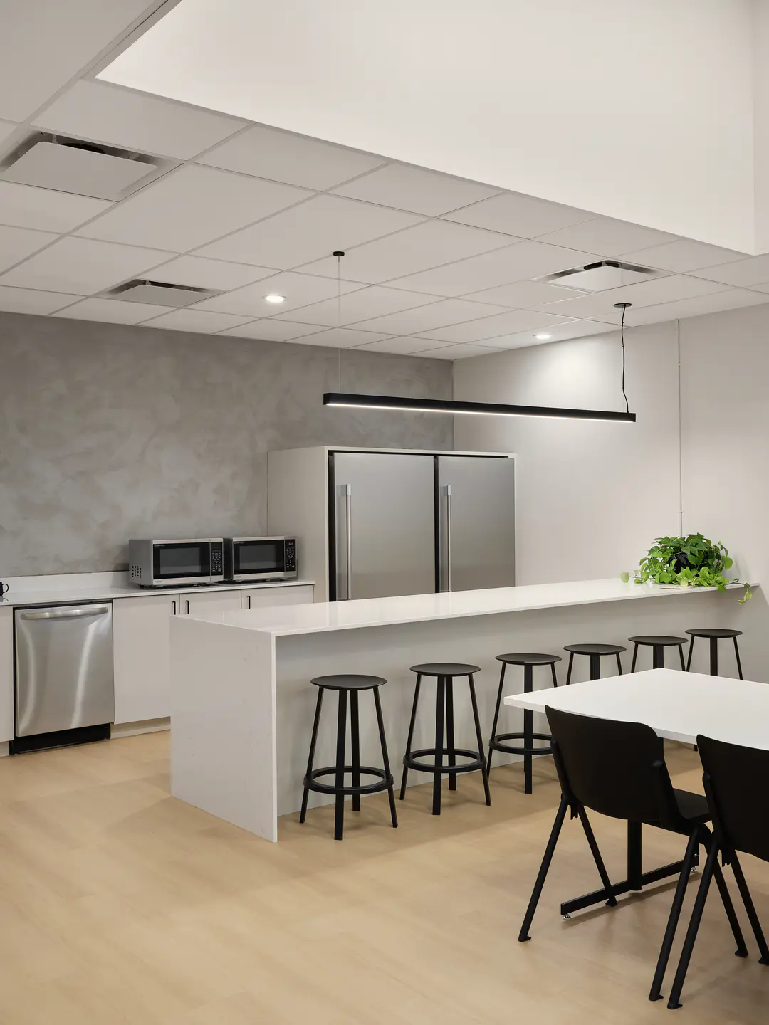 Aménagement des bureaux du consortium Mobilité Bleu Horizon (MBH), formé à parts égales des sociétés Pomerleau, EBC et Spie batignolles, pour réaliser les travaux de prolongement de la ligne bleue du métro de Montréal. Considérant l'importance de ce projet, la vitesse d'exécution pour la construction des bureaux temporaires fut un défi de taille.