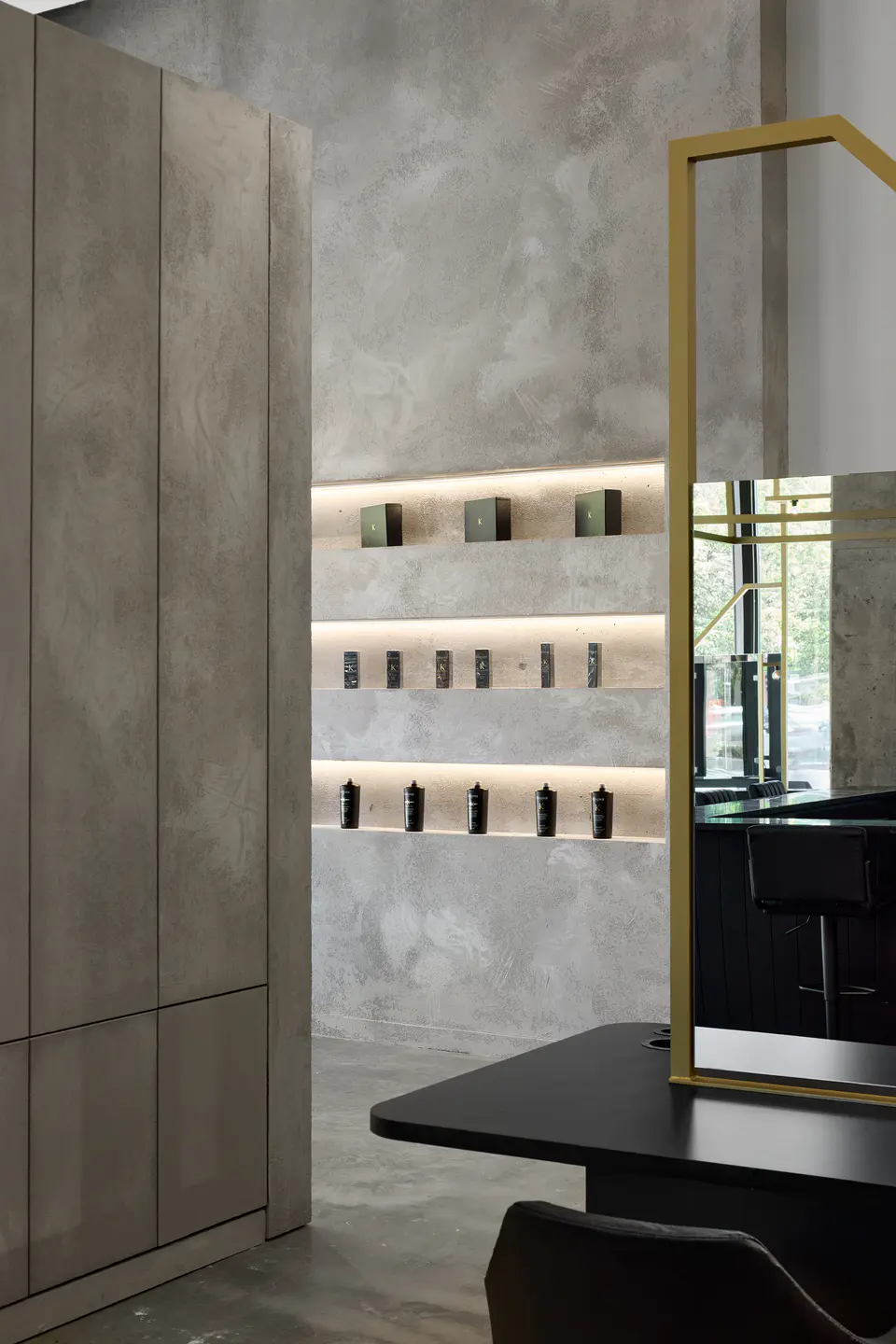 Agrandissement du salon de coiffure Blunt à Griffintown, transformé en un espace moderne et chic. Le projet a permis d'optimiser l'aménagement pour offrir une expérience client haut de gamme dans un environnement raffiné et contemporain.