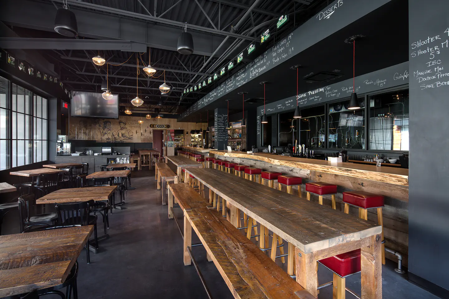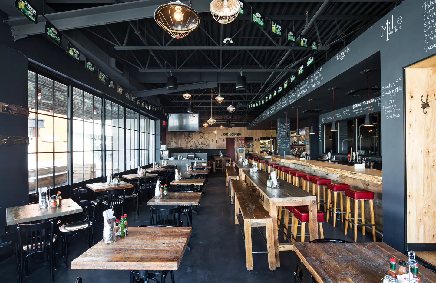 Construction and complete design of the new Mile Public House restaurant and bar on the South Shore. This project resulted in a trendy space combining urban ambiance and sleek design, designed to offer a superior dining and cocktail experience.