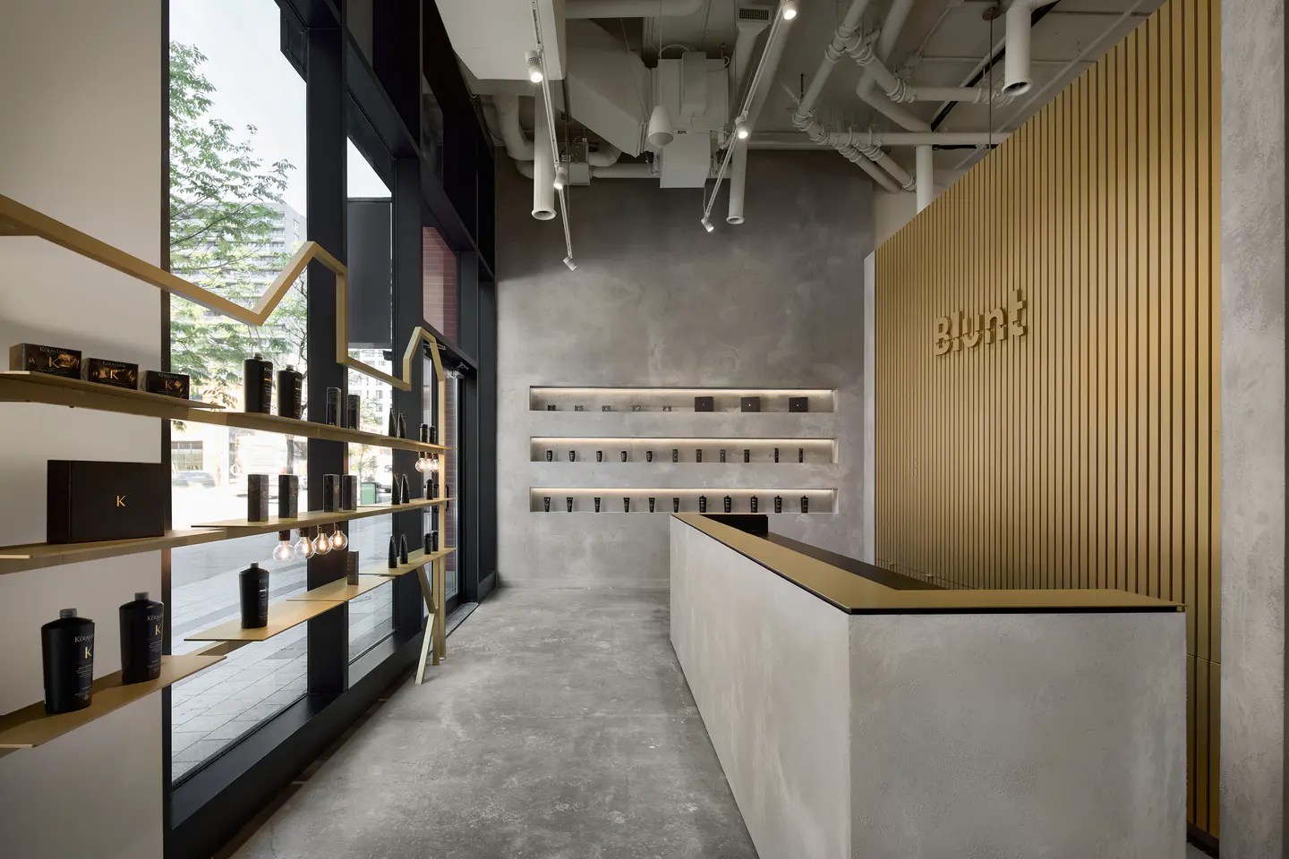 Blunt Hair Salon in Griffintown has been expanded to create a modern and chic space. The project optimized the layout to offer a high-end customer experience in a refined and contemporary setting.