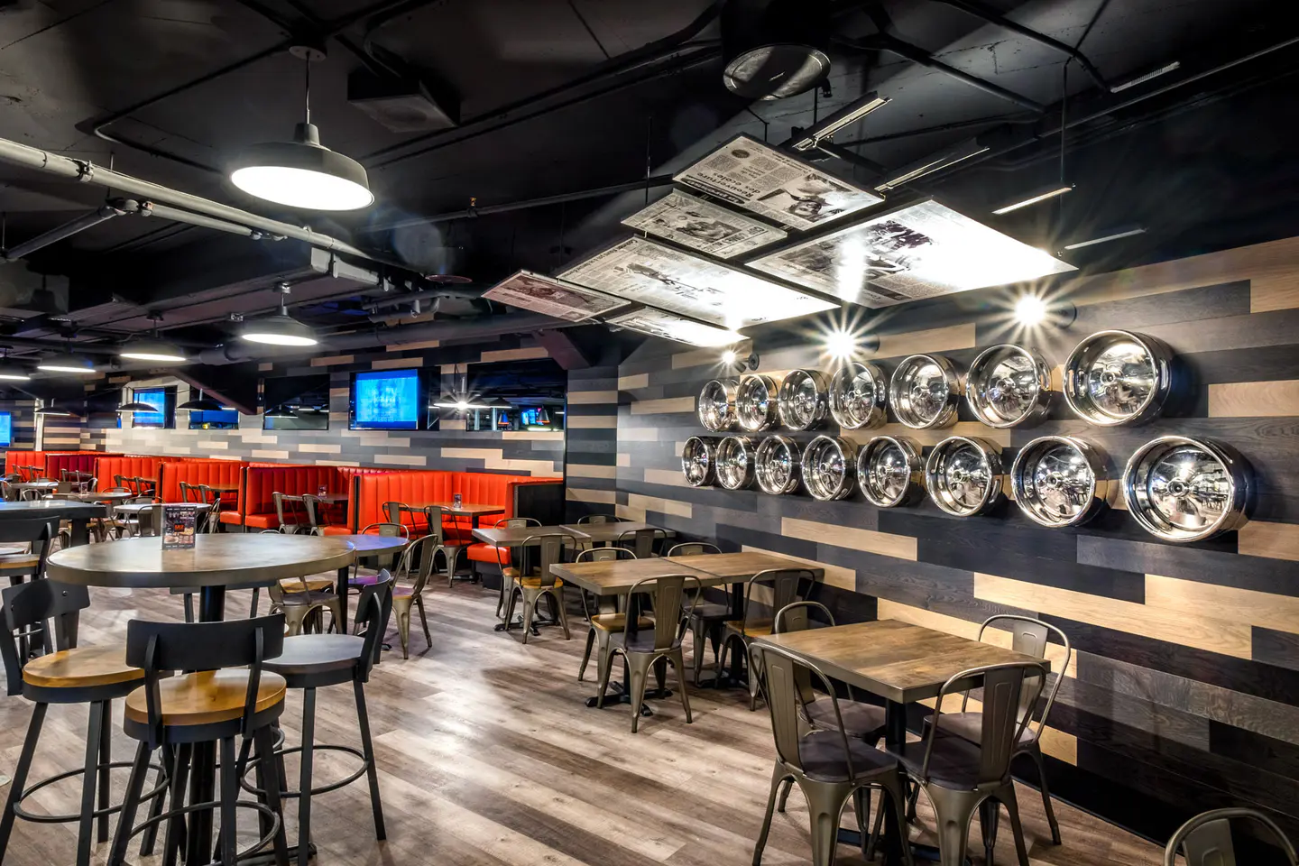 Rénovation complète de l'aire de restauration M2 et aménagement du restaurant Le Mythik au Centre Bell, de nouveaux espaces élégants offrant une expérience culinaire raffinée en marge des événements sportifs et culturels. Le projet mise sur une atmosphère immersive alliant confort, design contemporain et cuisine soignée.