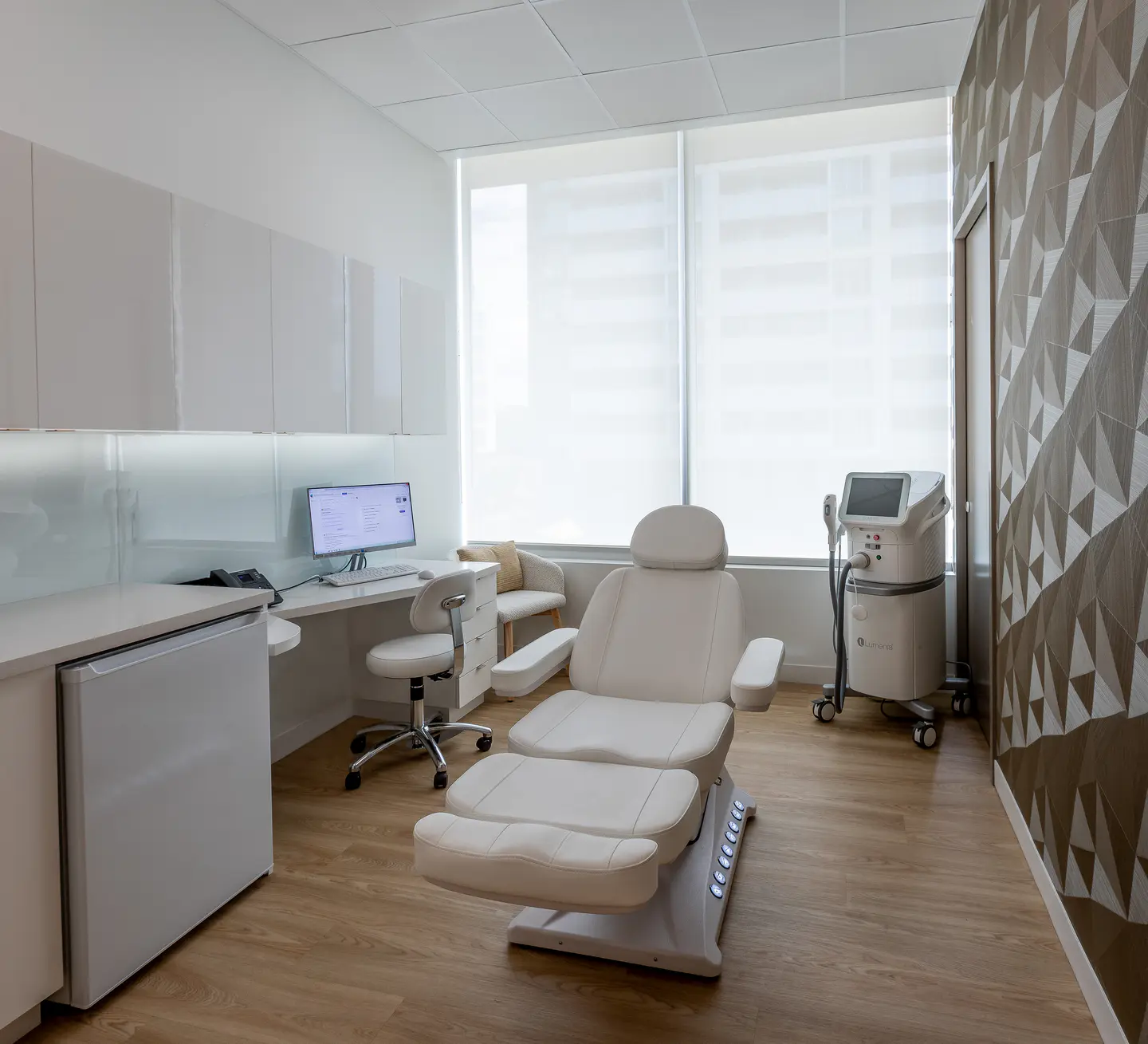 Aménagement d'une clinique d'ophtalmologie spécialisée pour Haute-Vision, intégrant des équipements médicaux de haute technologie.