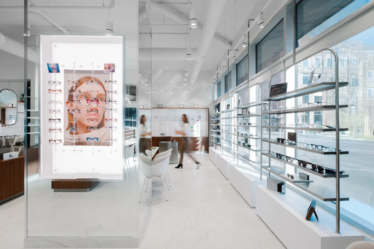 Aménagement d'une nouvelle clinique d'ophtalmologie et lunetterie proposant des montures haut de gamme dans le Vieux-Port de Montréal.
