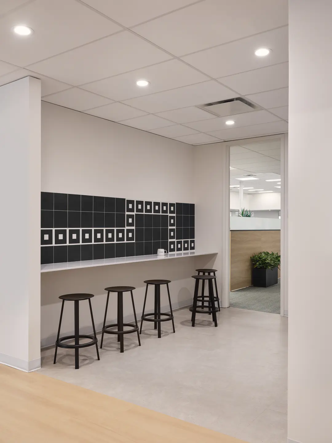 Aménagement des bureaux du consortium Mobilité Bleu Horizon (MBH), formé à parts égales des sociétés Pomerleau, EBC et Spie batignolles, pour réaliser les travaux de prolongement de la ligne bleue du métro de Montréal. Considérant l'importance de ce projet, la vitesse d'exécution pour la construction des bureaux temporaires fut un défi de taille.